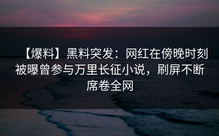 【爆料】黑料突发:网红在傍晚时刻被曝曾参与万里长征小说,刷屏不断席卷全网
